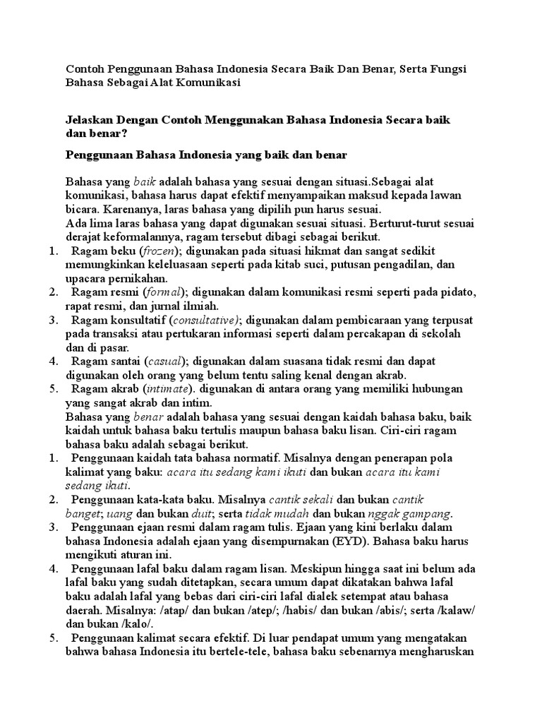 Contoh Penggunaan Bahasa Indonesia Secara Baik Dan Benar Pdf